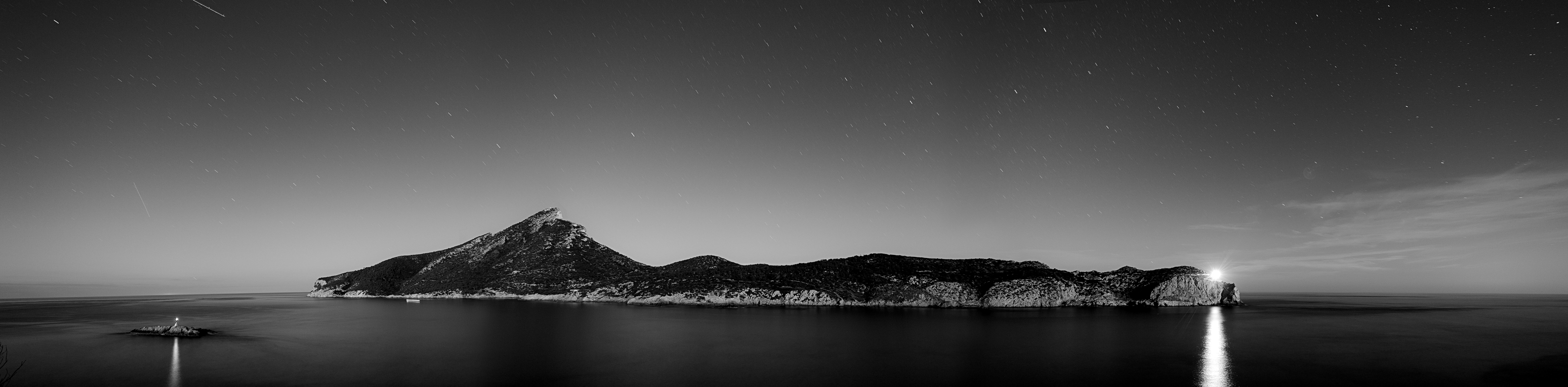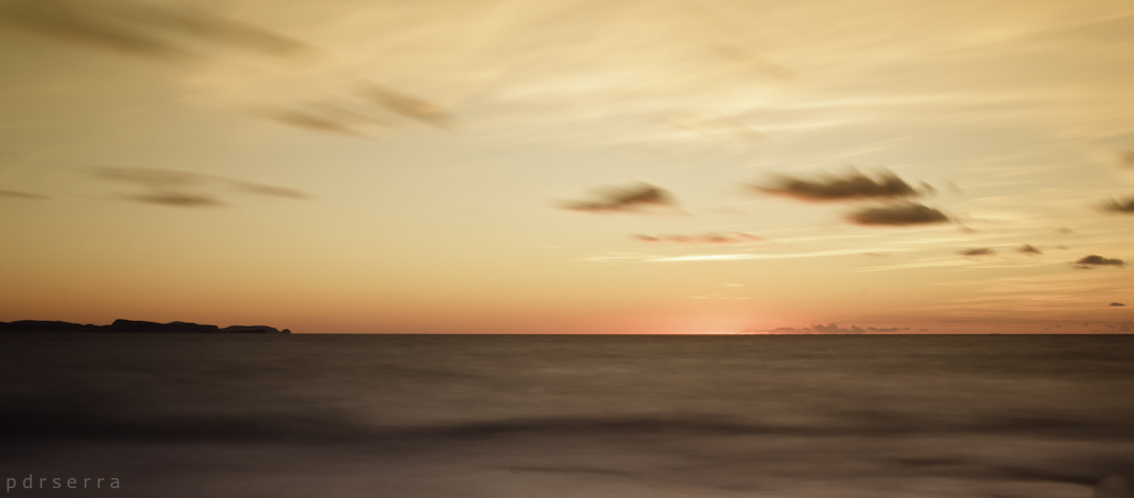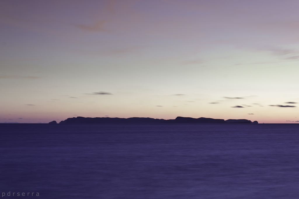 la silueta de la Illa de Cabrera cortando el horizonte al anochecer…
